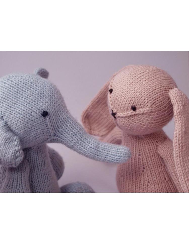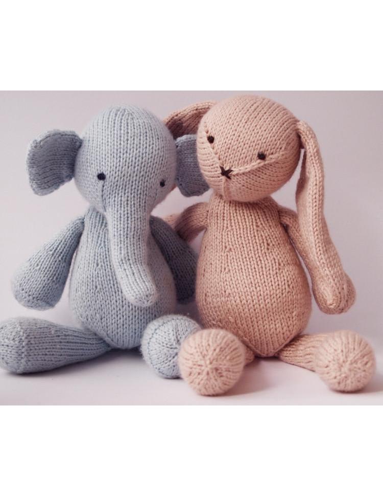 Because size is not crucial to this project the gauge does not need to be matched exactly and the overall size can be changed by changing the yarn weight and needle size. The most important thing is to work Sophie at a relatively tight gauge to create a firm fabric without holes that the stuffing can poke through. If you are using a different yarn weight you should use needles to achieve a tighter than recommended gauge.