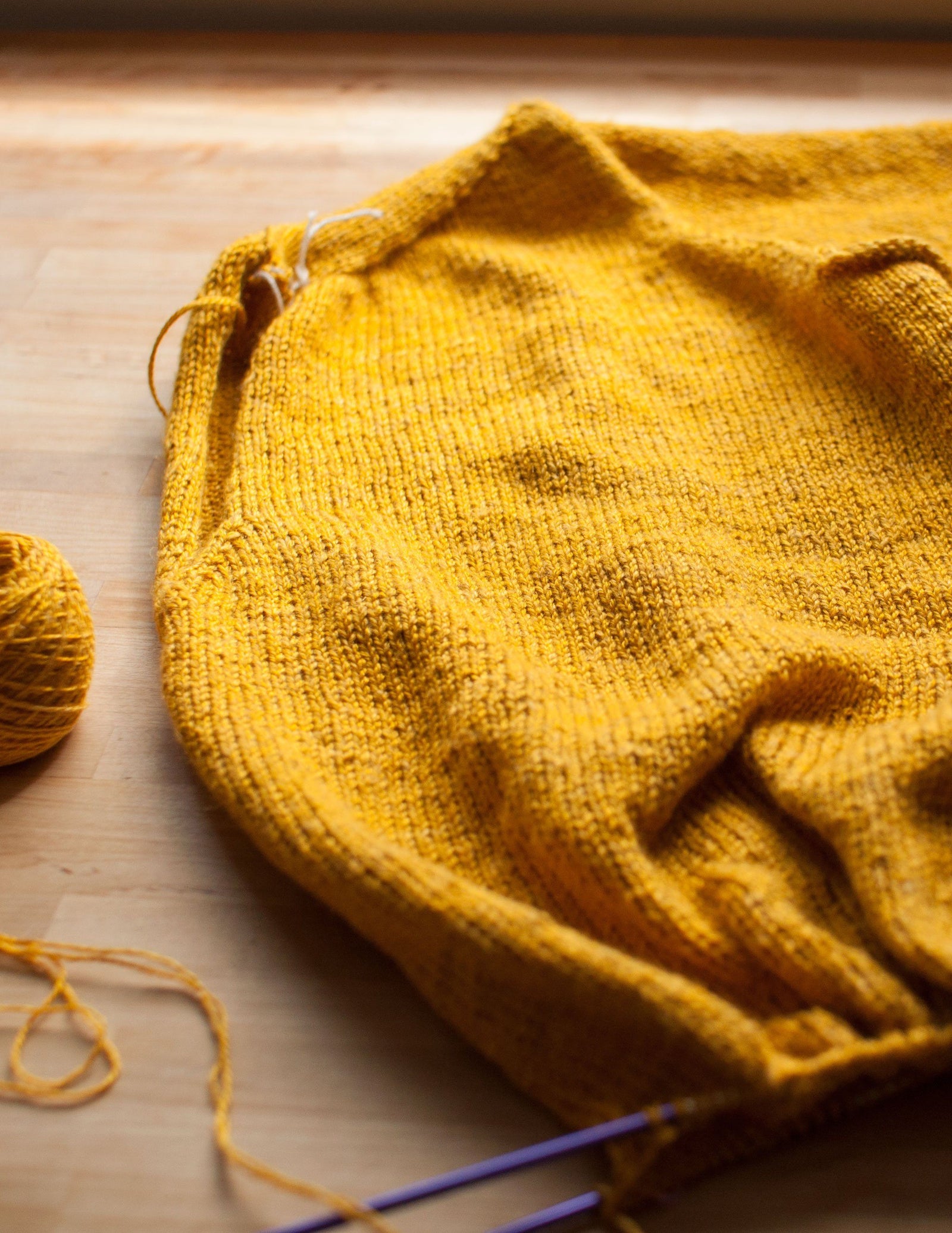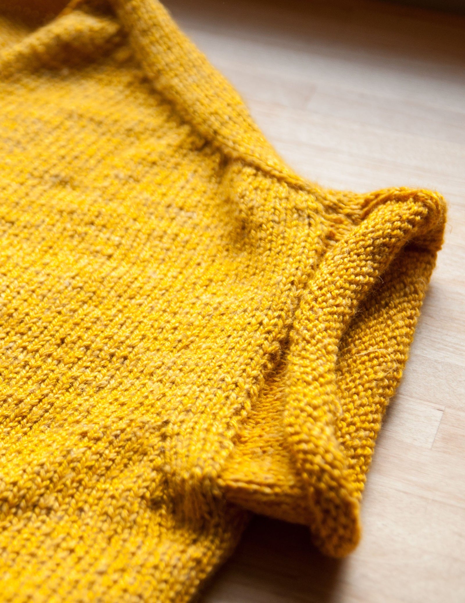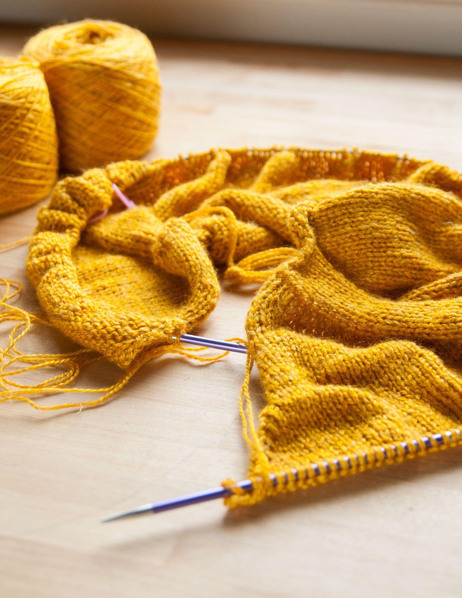 Working the brioche neck detail on the Polwarth sweater