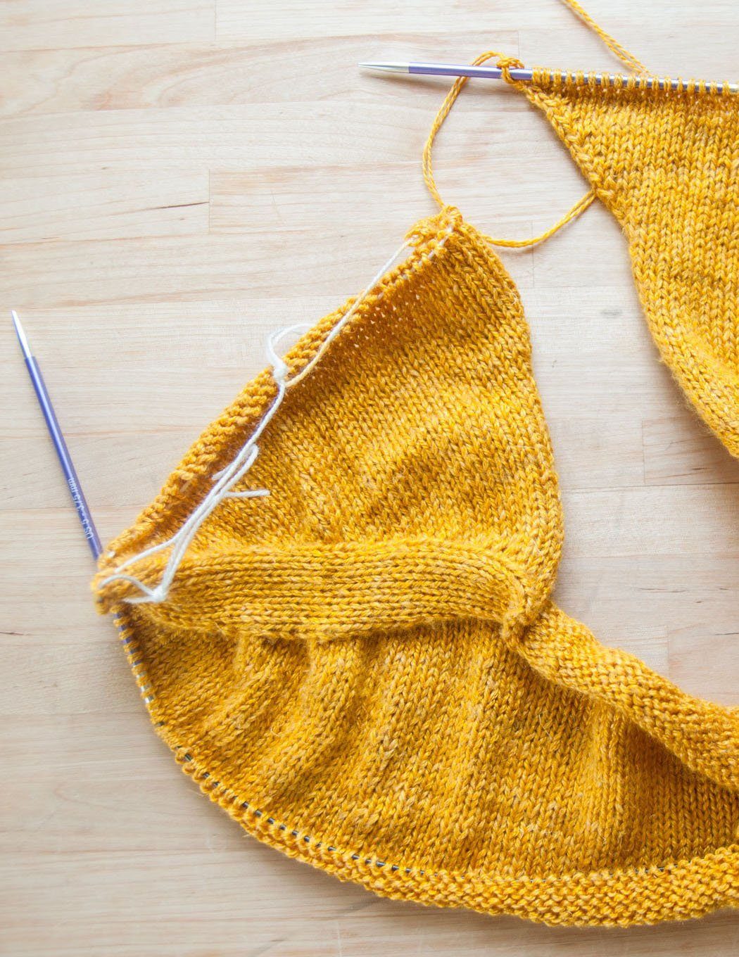 Joining the body and sleeves on a seamless bottom up sweater