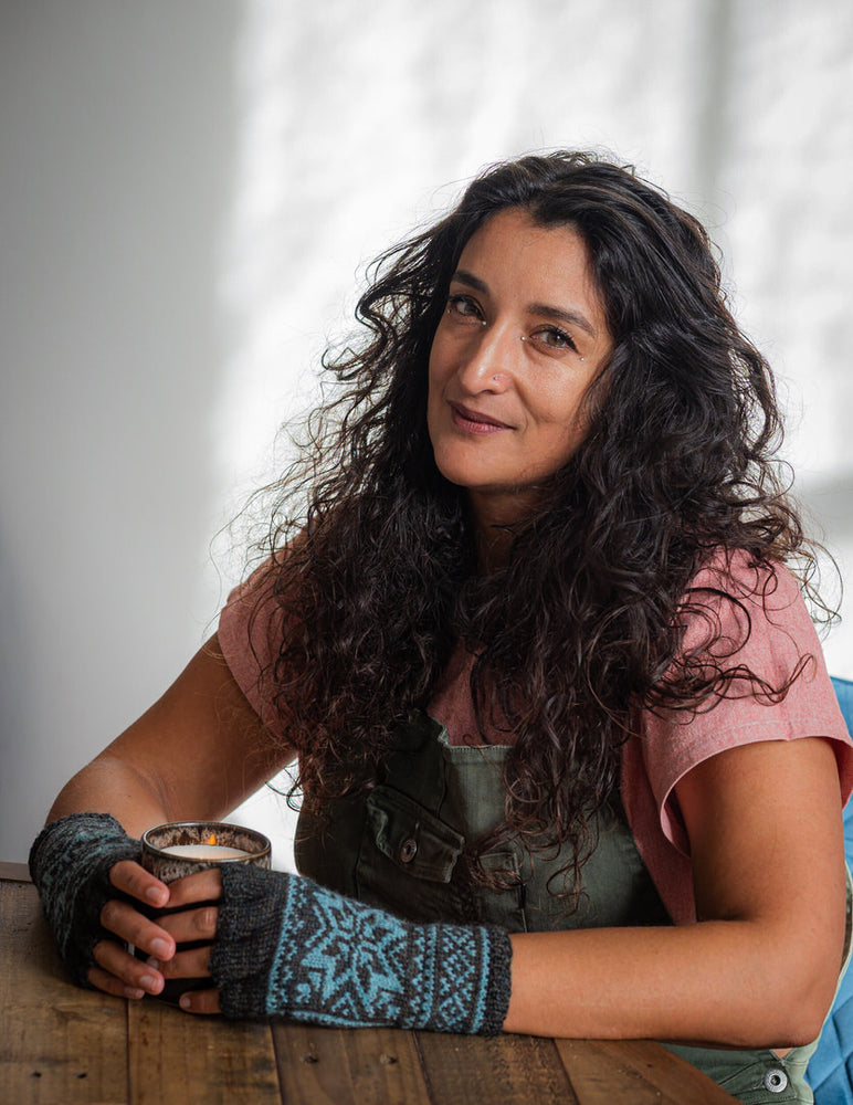 In the classic Norwegian Selbu mittens that inspired Belyse the thumb is typically worked entirely on the palm side, with a symmetrical gusset. This looks beautiful but can feel restrictive. For greater freedom of movement the thumbs on Belyse are positioned closer to the side of the hand, and shaped with a single column of decreases on the palm. The shaping follows the life line on the palm, and allows the colourwork pattern to flow from the back of the hand over the thumb. If you're new to stranded colourwork, or working larger motifs, the pattern includes helpful tips for handling the longer floats.