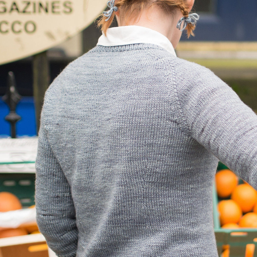 Worked from the bottom up the body features darted waist shaping that hits a little higher than the natural waistline, which I find is more flattering to the majority of women. Three quarter length sleeves are simply a personal favourite, but could easily be lengthened if you don’t find yourself constantly pushing sleeves out of the way, as I do. Sleeves and body are joined and the yoke is worked seamlessly, with a pattern of decreases that creates something between a saddle shoulder and a classic raglan: a ‘raddle’ yoke, if you will. This yoke style follows the contours of the body more closely than a raglan, defining the shoulders in a way that those of you who dislike raglans are likely to find much more flattering. Following the varying decrease rates requires just a little more focus than a classic raglan but the advantages are worth the effort. Not only providing a more refined shape, this construction means that the yoke depth corresponds to the body, rather than being dictated by the construction method.