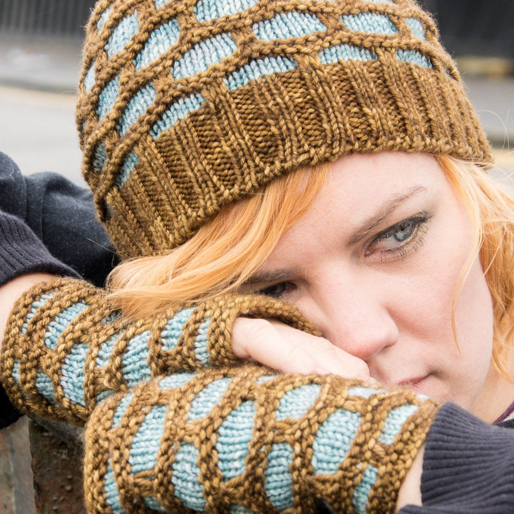 Stay cosy in this stylish and practical beanie and fingerless mitts set worked in two colours. The interesting textured stitch pattern helps to keep you warm and is simply achieved with slip stitches - meaning that you're only ever working with a single colour per round.