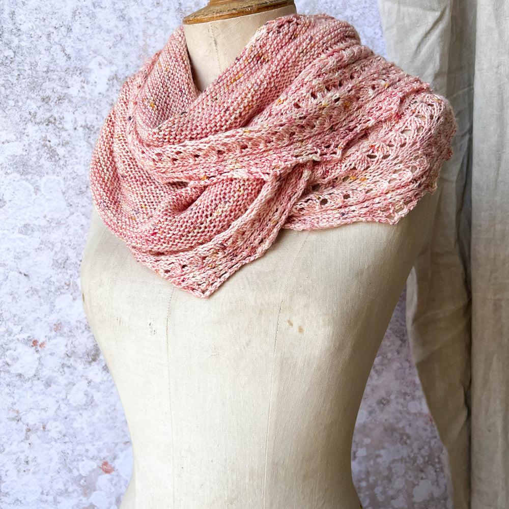The Tresna shawl comes in two sizes, giving the option of two different styles. The smaller, one skein size, is perfect as a quick gift; the ideal size for wrapping neatly around your neck and tucking into a jacket or coat. The larger size uses two skeins and knits up as more of a generously sized wrap that you can drape stylishly around your shoulders for warmth and comfort.