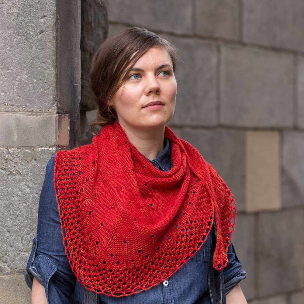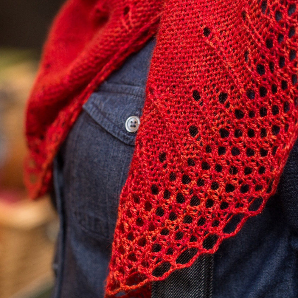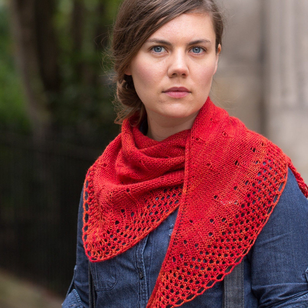 Shown in SweetGeorgia Yarns Silk Crush (50% superwash merino, 50% silk, 375 yds / 342m, 4oz / 115g) in blood orange.