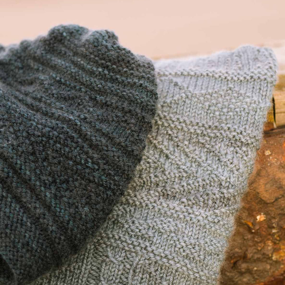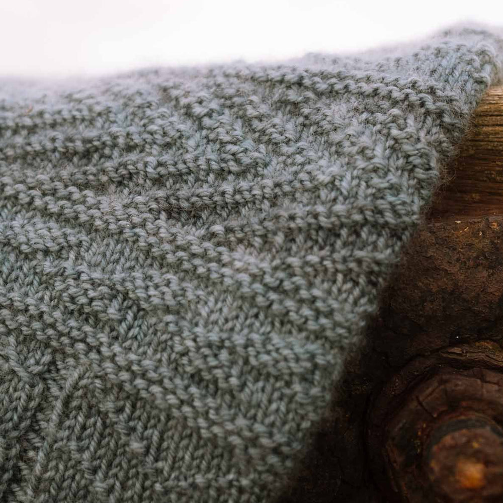 A decorative Channel Islands cast-on gives the bottom garter stitch band a knotted edge and incorporates another traditional gansey element. The cowl is completed with a textured rib pattern and all of the stitch patterns look great when worn in either direction so there’s no need to worry about top and bottom.