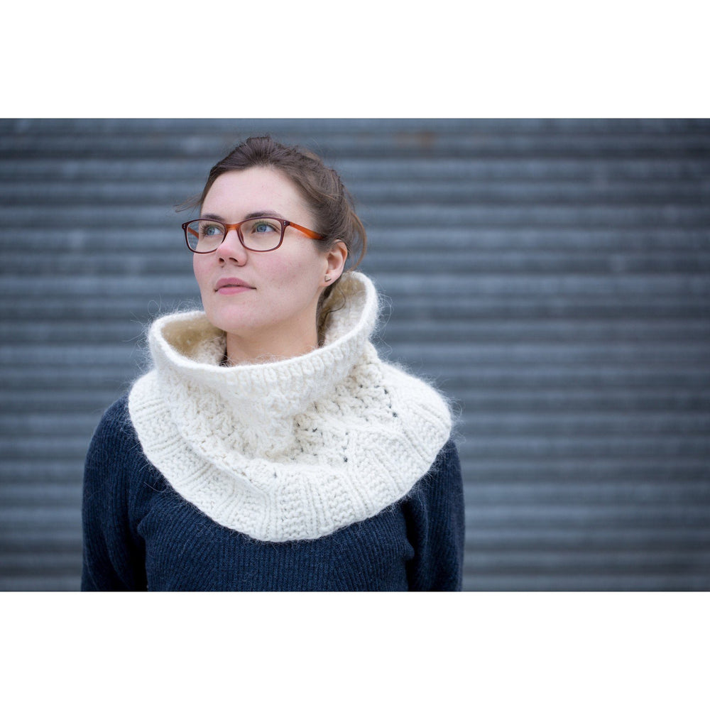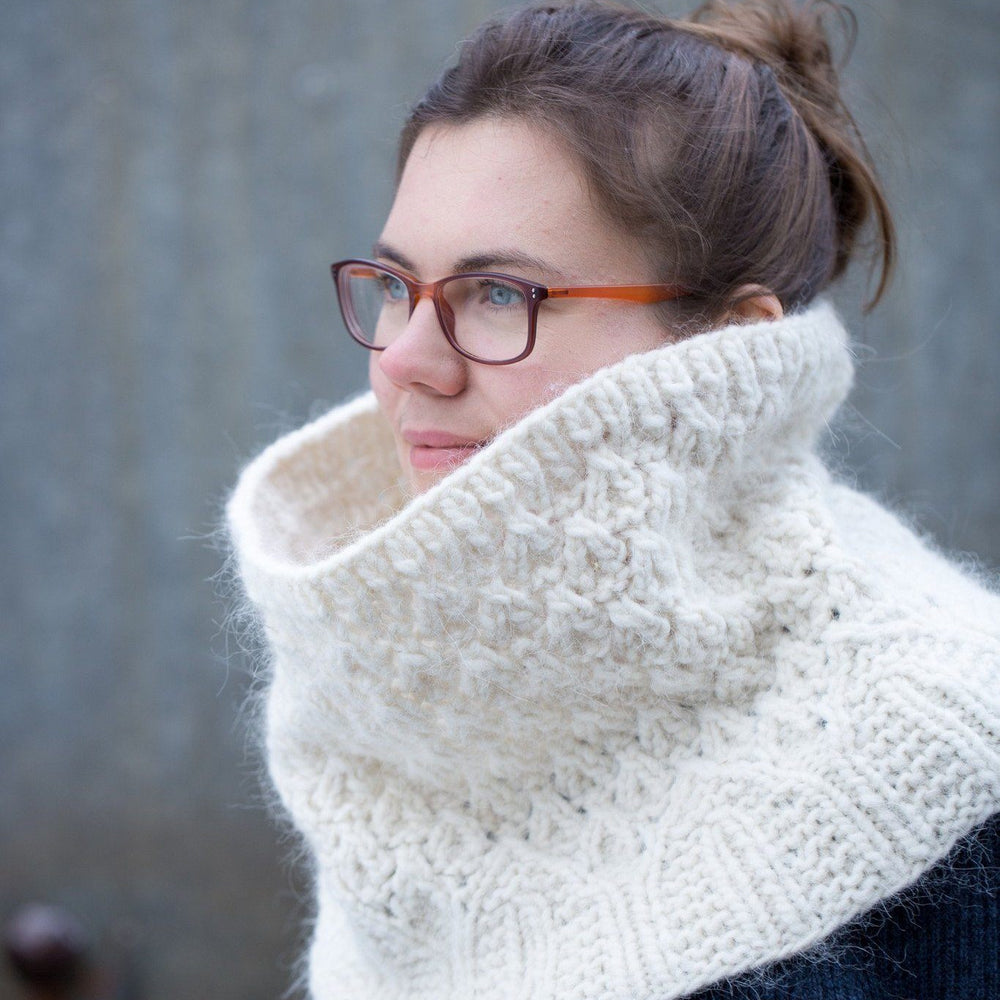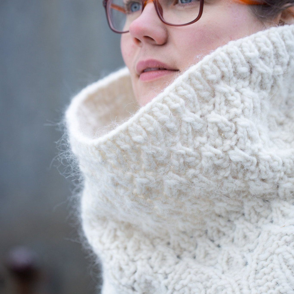 Shown in Hinterland Watershed (50% Canadian Rambouillet, 50% alpaca, 150 yds / 137m, 4oz / 112g) in Snow