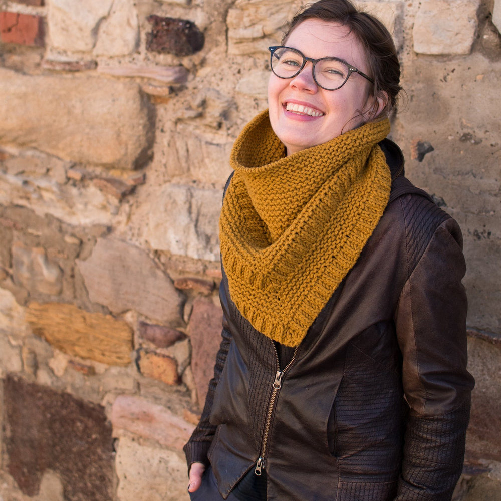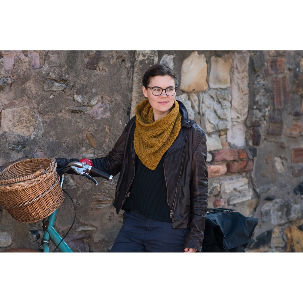 Perfect for keeping your neck warm on windy days without having to worry about the ends of a shawl or scarf coming loose. Radost is worked from the top down, starting with a neat folded edge worked using a provisional cast on. It knits up quickly with small sections of garter and brioche stitch and makes a great first brioche project. Increases at the centre front create a flattering and cosy bandana shape — it looks a bit strange flat but drapes perfectly when worn. Shown in Cyrano from De Rerum Natura, a round, 5ply structure that creates well-defined stitches and deeply textured ribs.
